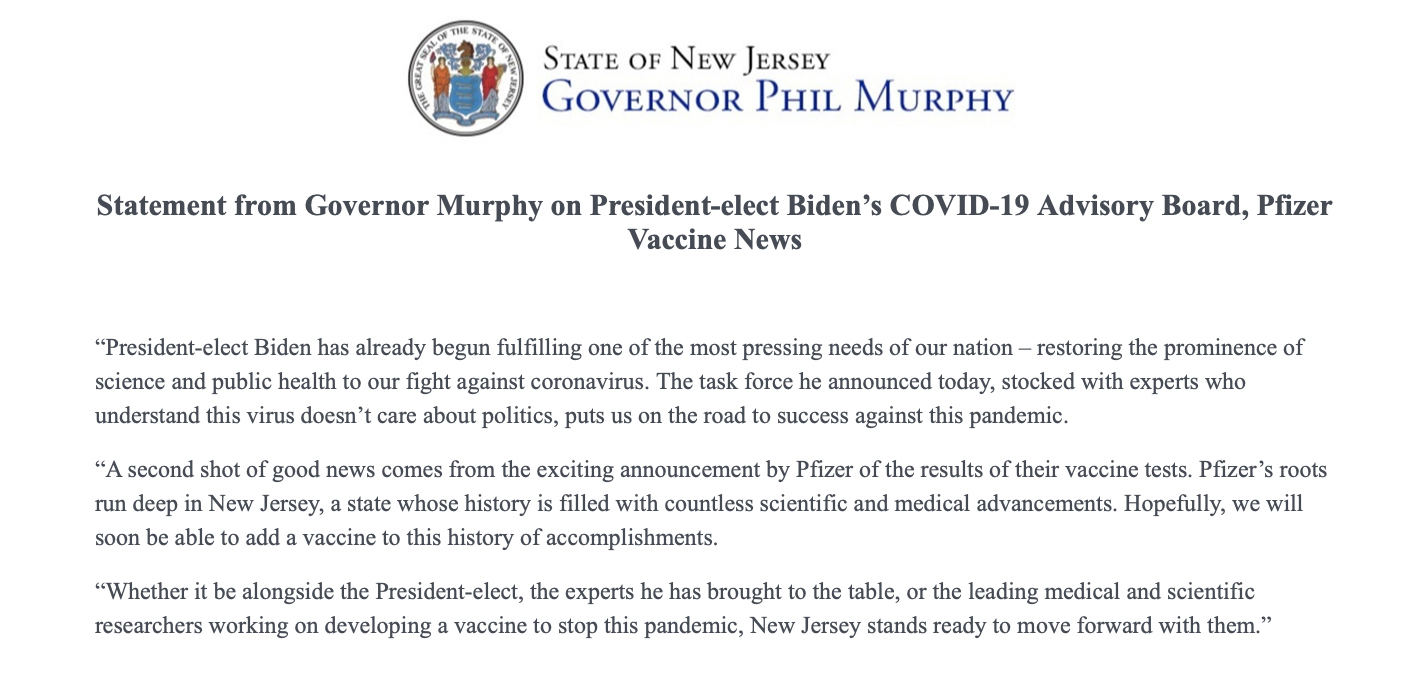 Governor Phil Murphy On Twitter President Elect Joebiden Has Already Begun Fulfilling One Of Our Nation S Most Pressing Needs Restoring The Prominence Of Science And Public Health To Our Fight Against Coronavirus